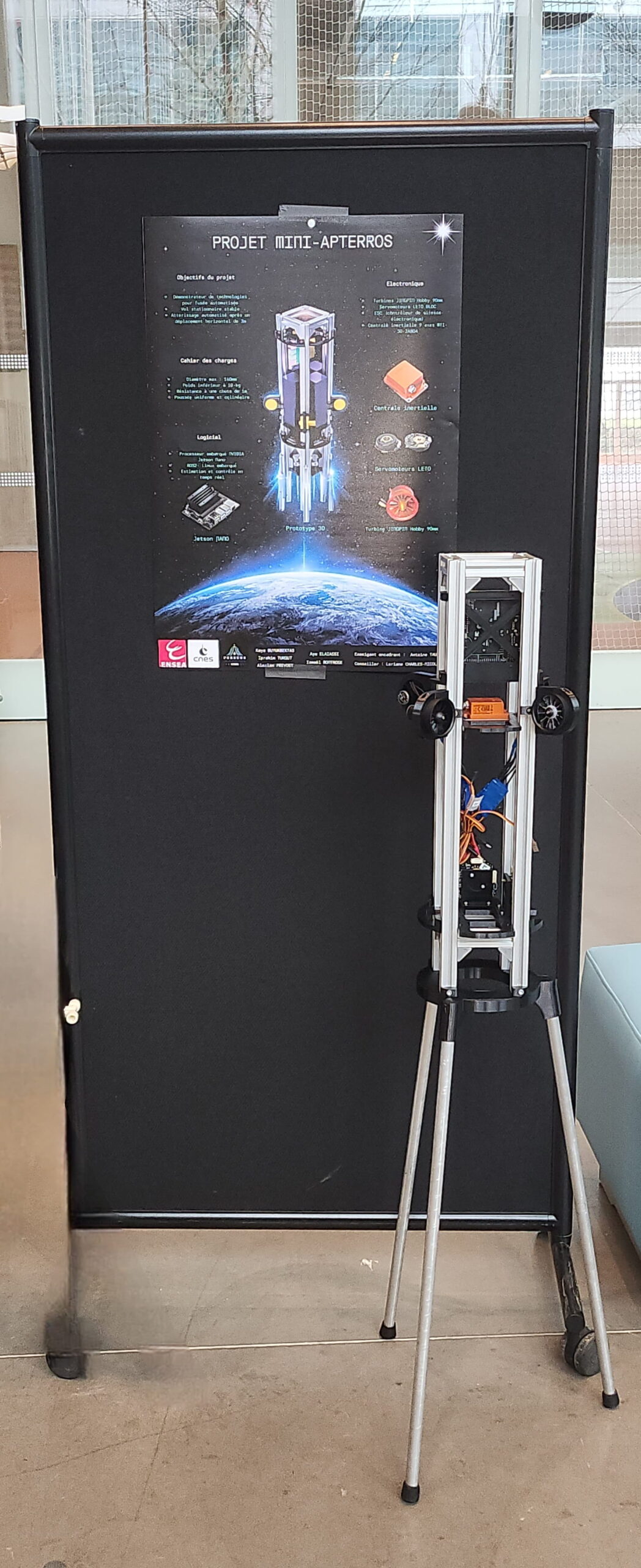 Le Projet Mini-APTERROS (Advanced Propulsion Technology for Reussible Rocket and Operatinf System) a pour objectif la mise en place d’une brique technologique fondamentale nécessaire à la réalisation d’un démonstrateur de premier étage réutilisable biliquide VTVL (Vertical TakeOff Vertical Landing), qui préfigurera le démonstrateur de fusée du challenge DREAM-ON (Disruptive Reusable Experimental Advanced Methane Oxygen Nanolauncher). L’élément nouveau, et pas des moindres, nécessaire à ce type de réalisation, est la maîtrise du GNC (Guidance Navigation and Control). Dans un premier temps, l’objectif est donc de travailler sur le GNC en faisant une application sur un démonstrateur à petite échelle, basée sur des technologies issues des drones facilement accessibles aux étudiants.