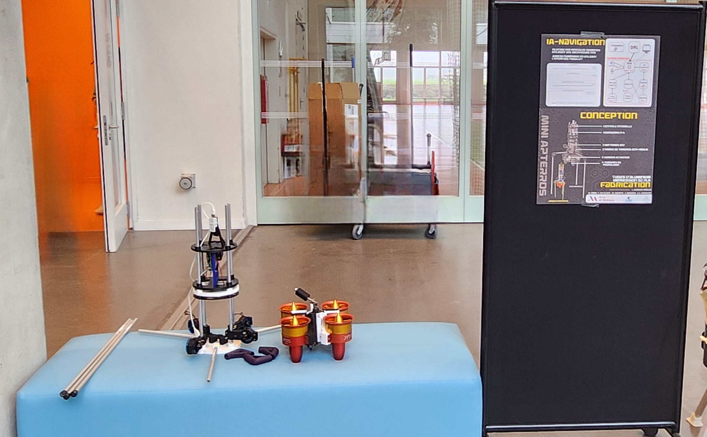 Le véhicule MINI-APTERROS sera donc de faible masse (<10kg) et son domaine d’évolution sera un vol captif afin de garantir le respect de la législation et la sécurité des opérateurs.